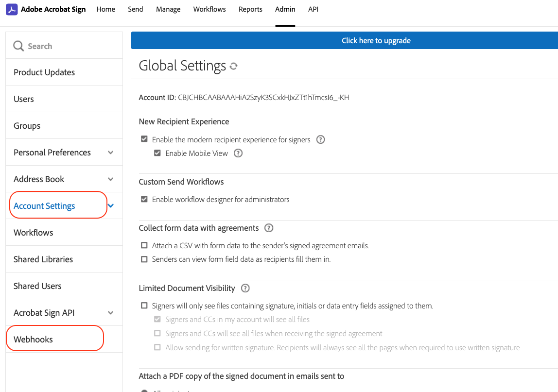 Before you begin, ensure you have access to the following information from your Adobe Sign account:
