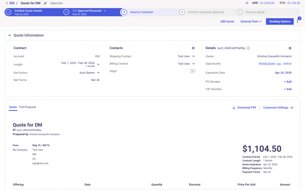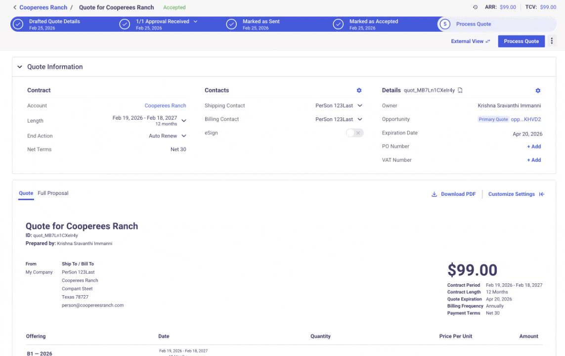- Once edits are complete, accept the changes and continue the quote lifecycle as desired.