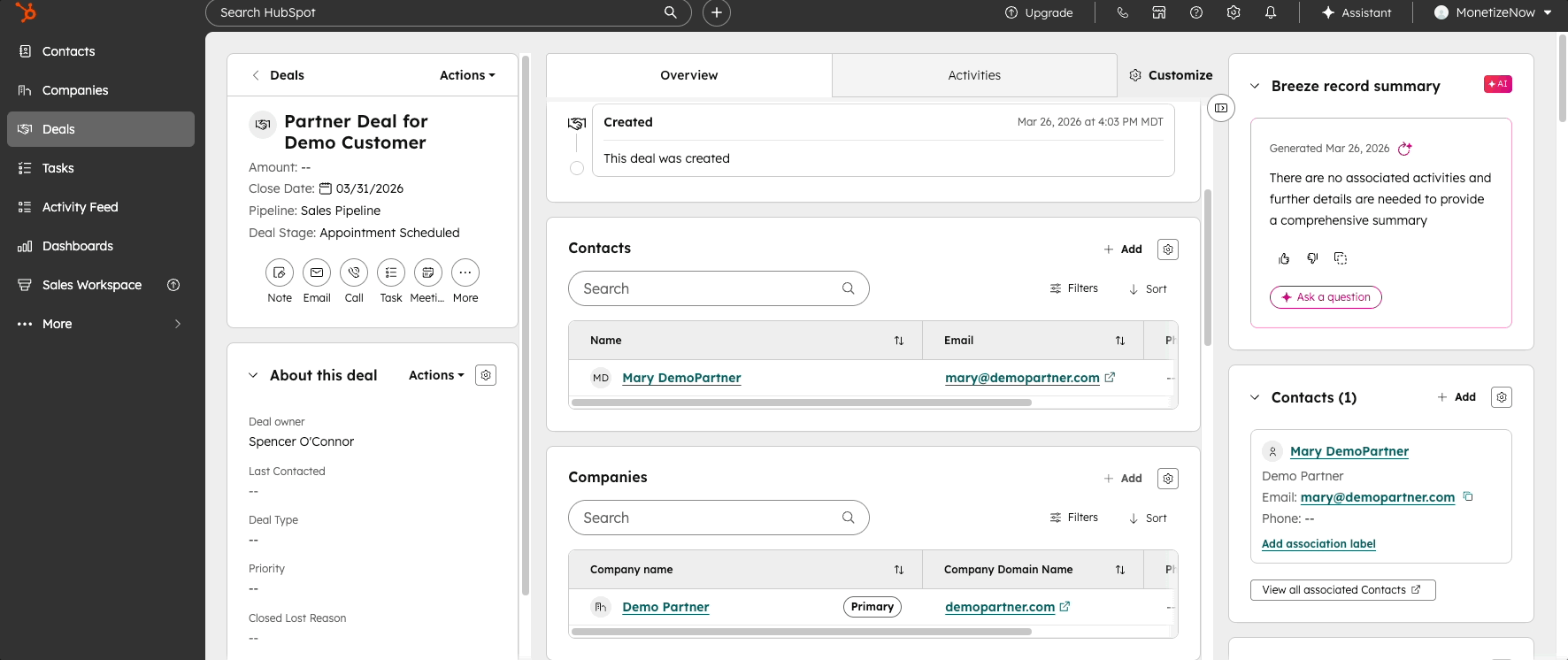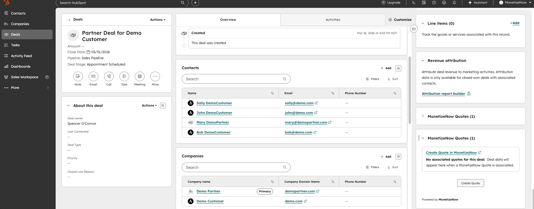 You can now include an additional company on a HubSpot deal and carry that relationship through to the MonetizeNow quote without leaving your normal workflow.