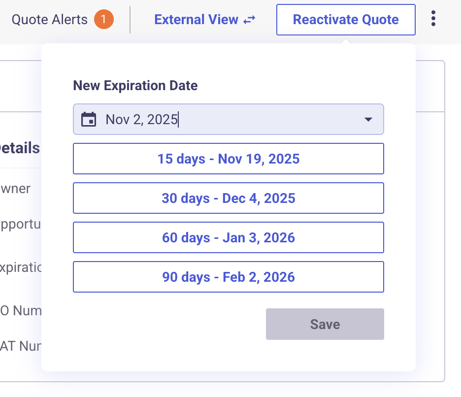 If your quote has been expired for less than 14 days, complete the following steps to Re-Activate your quote: